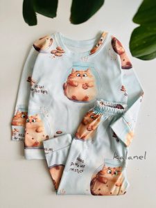 ست آستین بلند و شلوار طرح پیشی و کوکی