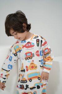 ست راحتی کودک آستین بلند و شلوار کوکو طرح ترافیک