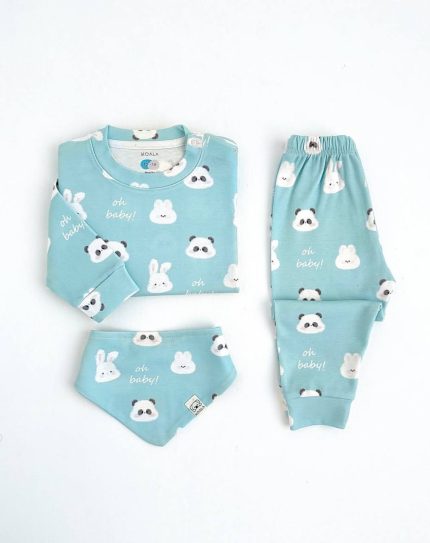 ست سه تکه نوزادی نرم و لطیف طرح پاندا و خرگوش