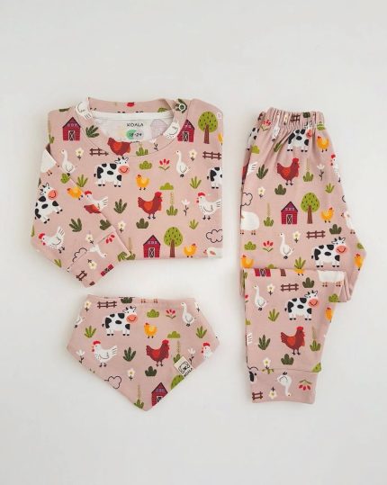 ست سه تکه نوزادی نرم و لطیف طرح مزرعه